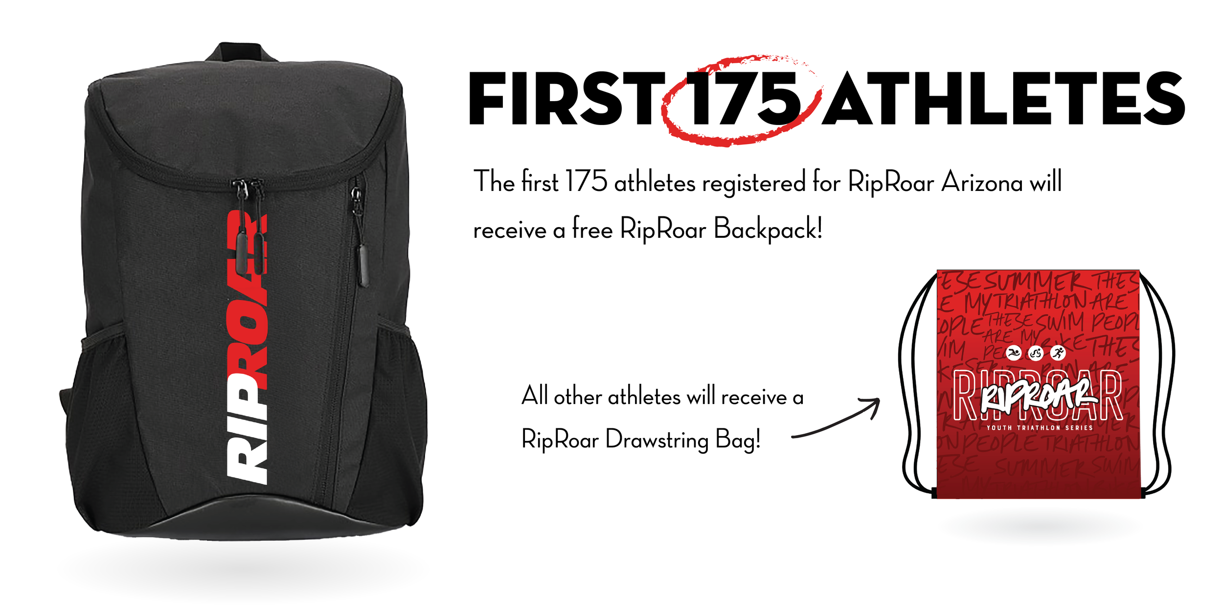 The first 175 registered athletes will receive a RipRoar Triathlon backpack as part of their race swag.